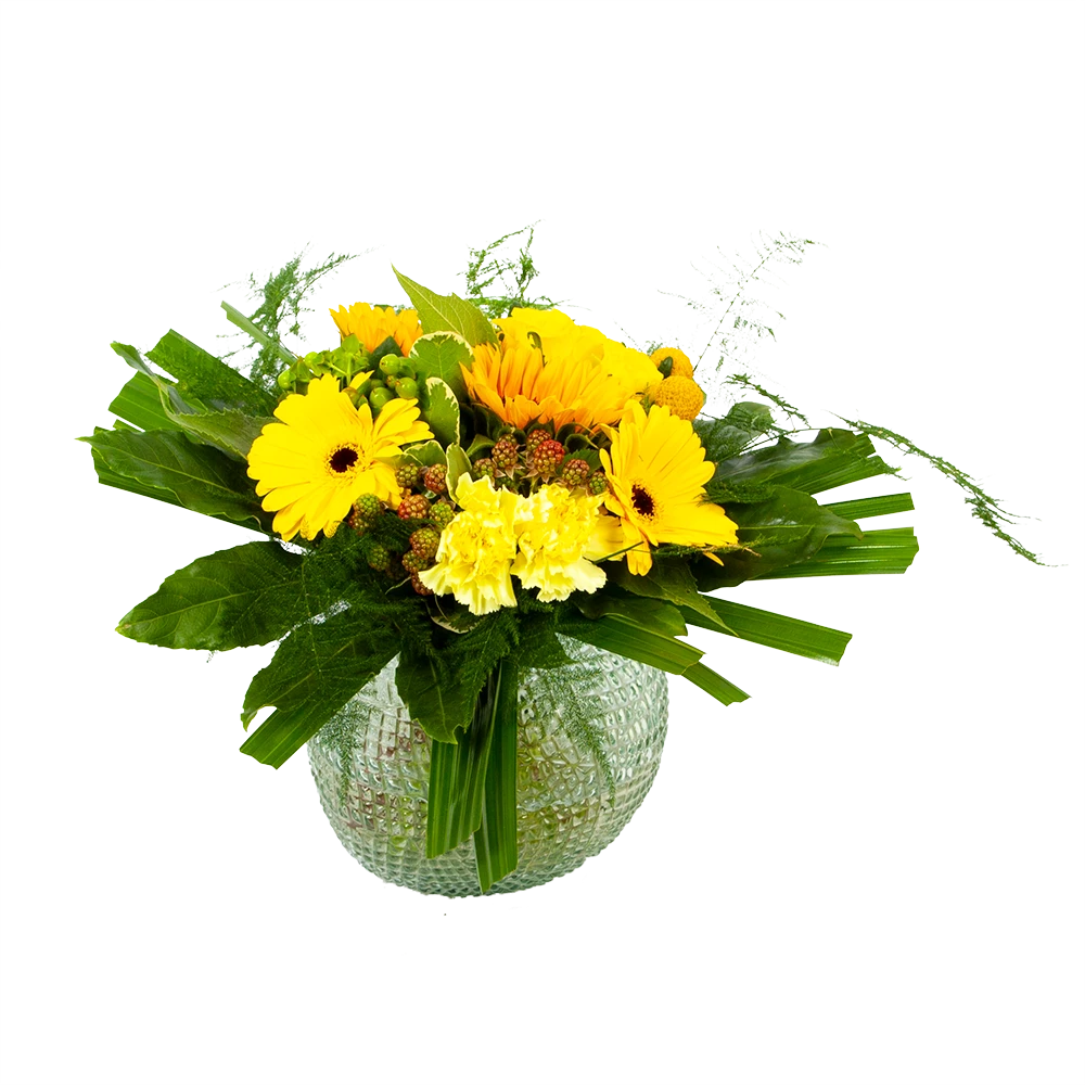 Met Boeket Zonnetje breng je een prachtig boeket met gele tinten in huis! Verwen jezelf met mooie gele bloemen of verras iemand anders! * Exclusief accessoires en vaas
